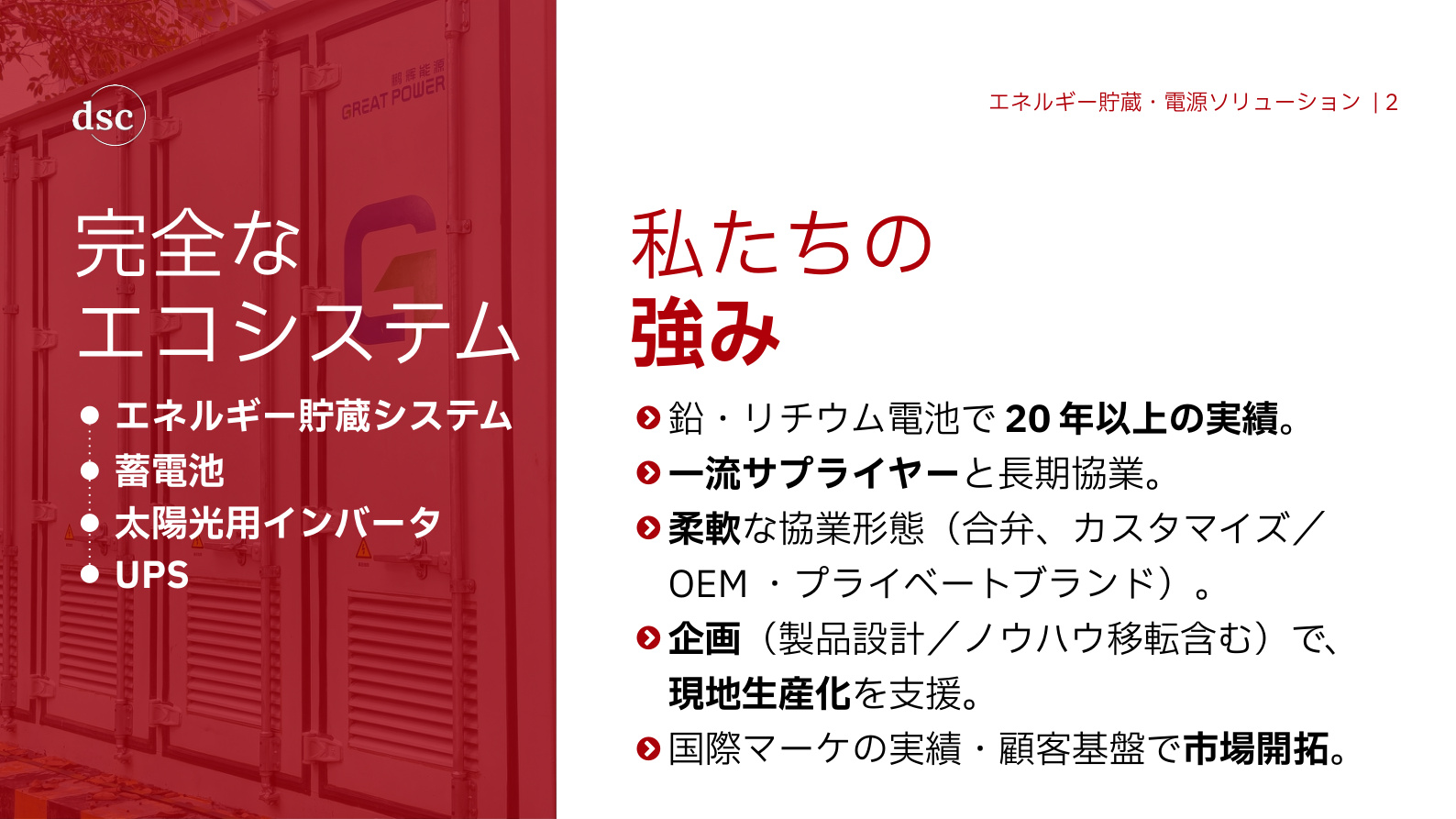 エネルギー貯蔵・電源ソリューション